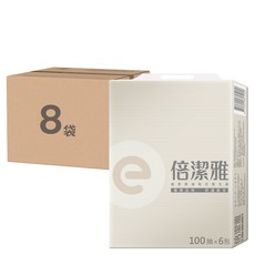 倍潔雅 超柔韌抽取式衛生紙, 100張, 6包, 8袋