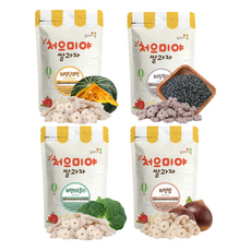 Ssalgwaja 米餅村 免運組 寶寶糙米圈圈, 蔬菜口味組, 南瓜+花椰菜+黑米+栗子, 4入
