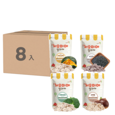SSALGWAJA 韓國米餅村 免運組 寶寶糙米圈圈, 蔬菜口味組, 南瓜+花椰菜+黑米+栗子, 8入