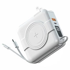 POLYWELL 寶利威爾 多合一磁吸自帶線快充行動電源 10000mAh, PW15-T05-A096, 白色