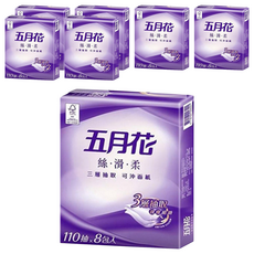 五月花 絲滑柔可沖面紙 3層, 8包, 7袋