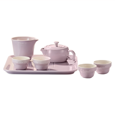 staub 陶瓷茶壺茶具7件組, 藕荷色, 1組, 茶壺 x 1 + 公道杯 x1 + 茶杯 x 4 + 茶盤 x 1