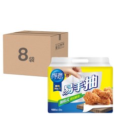 得意 抽取式廚房紙巾 易手抽, 3包, 8袋