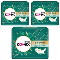 Kotex 靠得住 茶樹舒涼棉 涼感衛生棉 3分微涼, 28cm, 16片, 3包