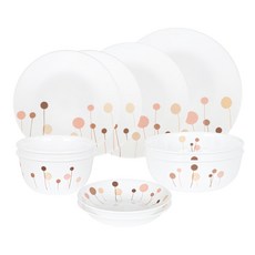 Corelle Brands 康寧餐具 碗盤組 10p, 2個韓式飯碗 + 2個湯碗 + 2個小碟 + 2個小圓盤 + 中圓盤 + 大圓盤, 簡約櫻花 白色, 1組