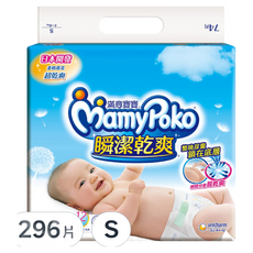 MamyPoko 滿意寶寶 瞬潔乾爽黏貼型尿布, S, 296片