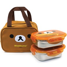 Rilakkuma 拉拉熊 便當袋 + 兩格不鏽鋼便當盒 2個, 單色, 1組