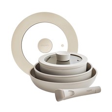 dogado IH電磁爐適用可拆式鍋具6件組, 湯鍋 18cm + 湯鍋蓋 18cm + 燉鍋 22cm + 平底鍋 26cm+ 多用途鍋蓋 + 可拆式把手, 1組, 米色