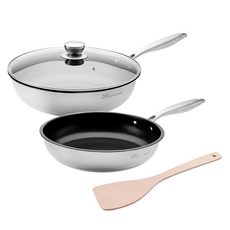 cook power 鍋寶 Diamond系列 鋼鑽不鏽鋼不沾4件組 IH/電磁爐適用, 1組, 平煎鍋24cm + 深炒鍋30cm + 深炒鍋蓋 + 木鏟, 銀色